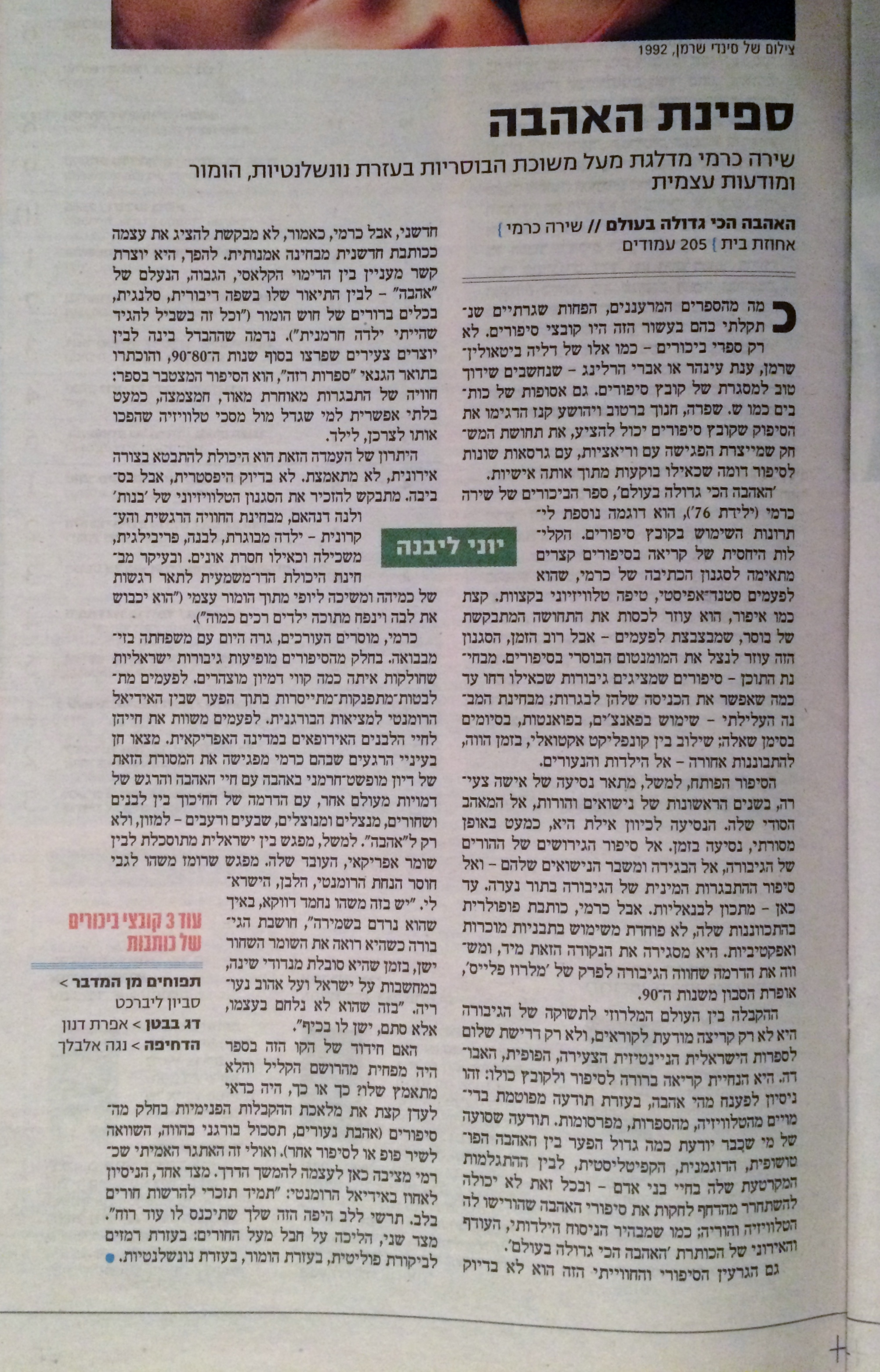 יוני ליבנה – 7 לילות: "שירה כרמי מדלגת מעל משוכת הבוסריות בעזרת נונשלנטיות, הומור ומודעות עצמית" שתף זאת: לשתף ב-X (נפתח בחלון חדש) X שתף בפייסבוק (נפתח בחלון חדש) פייסבוק Email a link to a friend (נפתח בחלון חדש) דואר אלקטרוני אהבתי טוען...