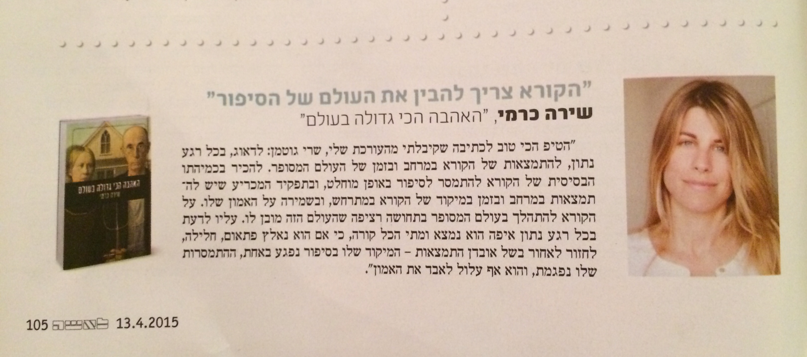 "לאשה" – הטיפ הכי טוב לכתיבה שקיבלתי מהעורכת שלי, שרי גוטמן שתף זאת: לשתף ב-X (נפתח בחלון חדש) X שתף בפייסבוק (נפתח בחלון חדש) פייסבוק Email a link to a friend (נפתח בחלון חדש) דואר אלקטרוני אהבתי טוען...