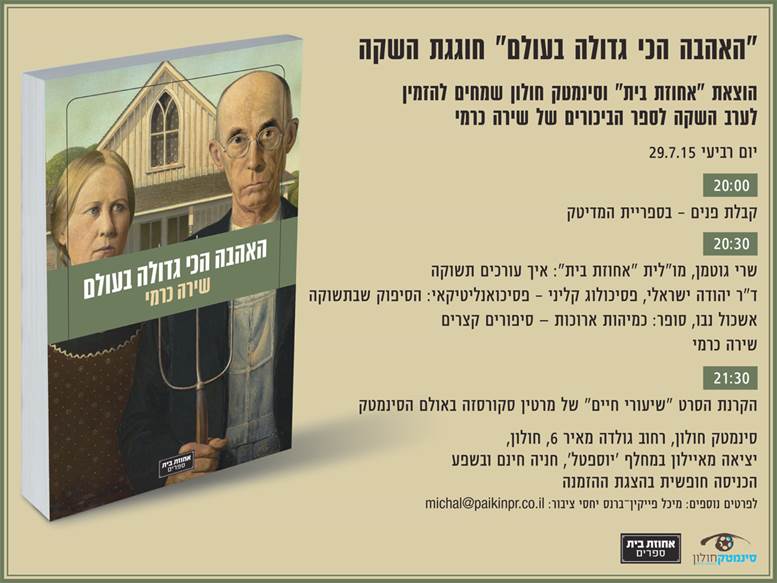 יום רביעי, 29.7, 20:00, סינמטק חולון, חניה חינם ובשפע.